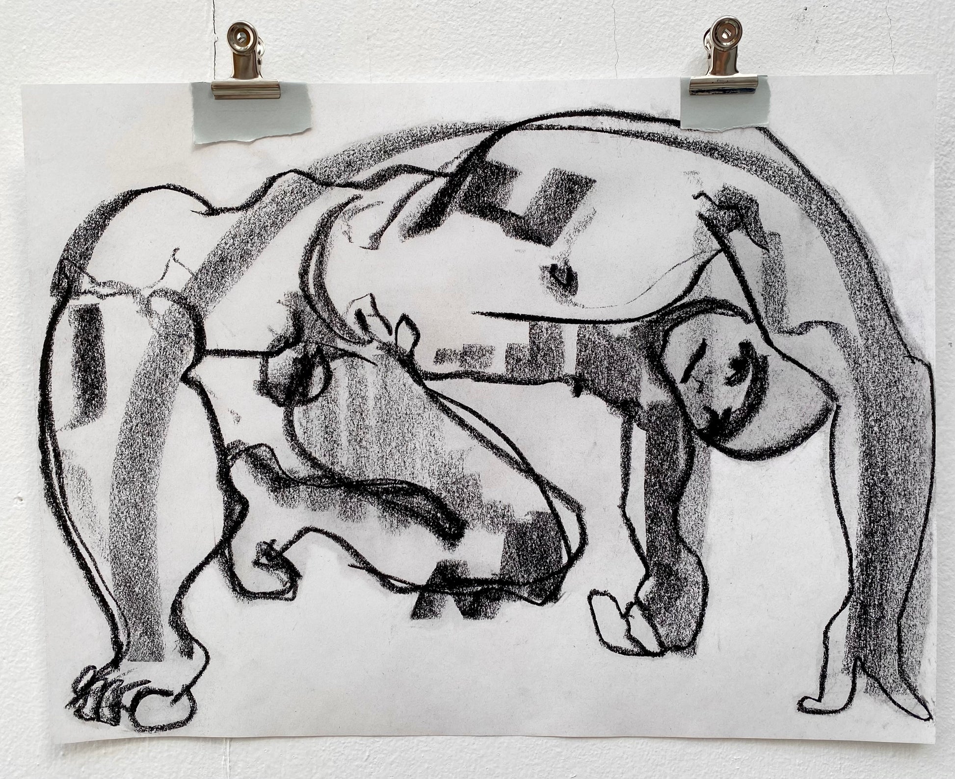 A drawing in black pastel on paper of the legendary Adrian.