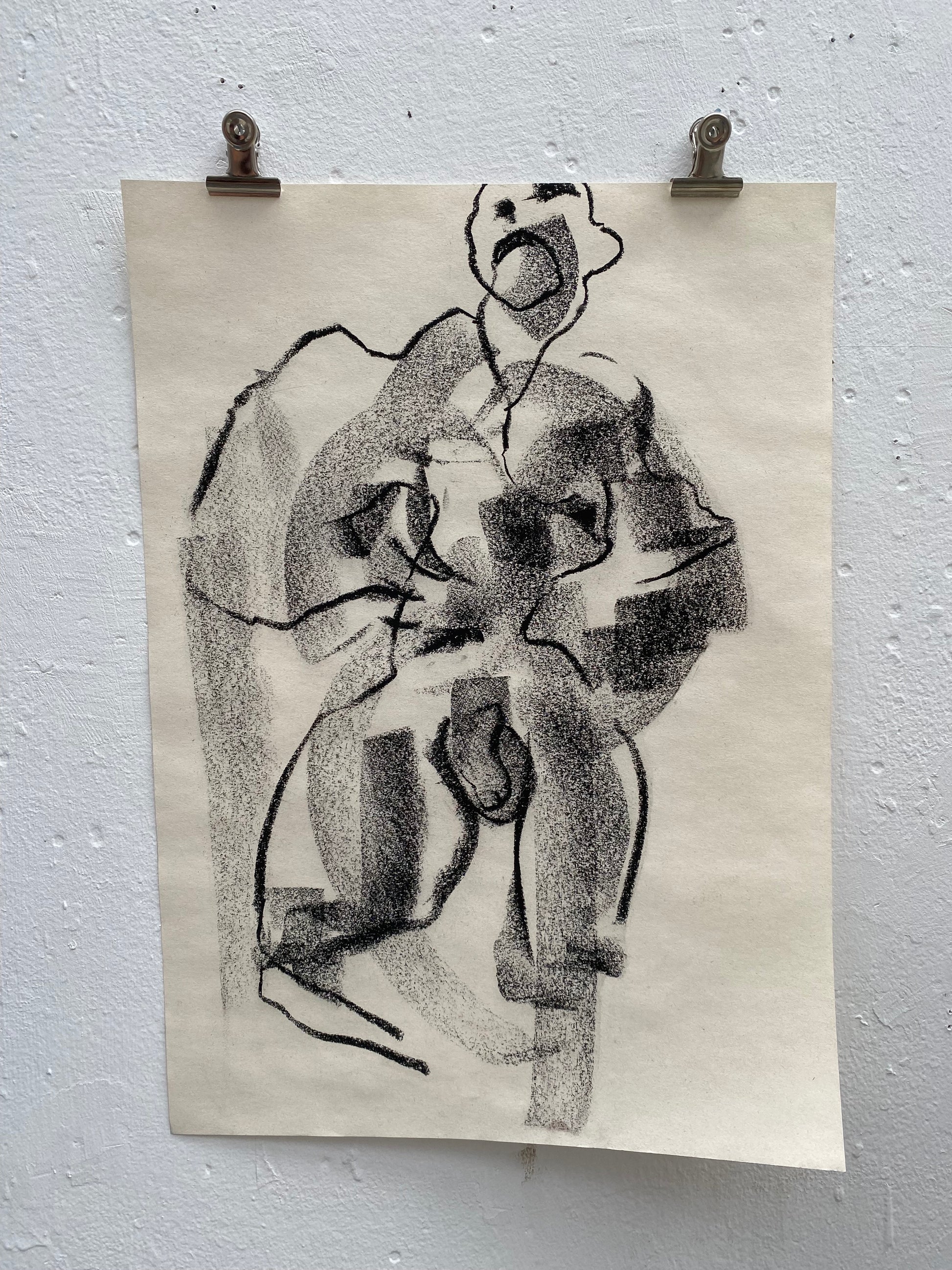 A drawing in black pastel on paper of the incredible Adrian! I've been lucky enough to draw Adrian for a number of years - he always provides Artists with unique and angular poses that allow you to play with distortion and exaggeration.