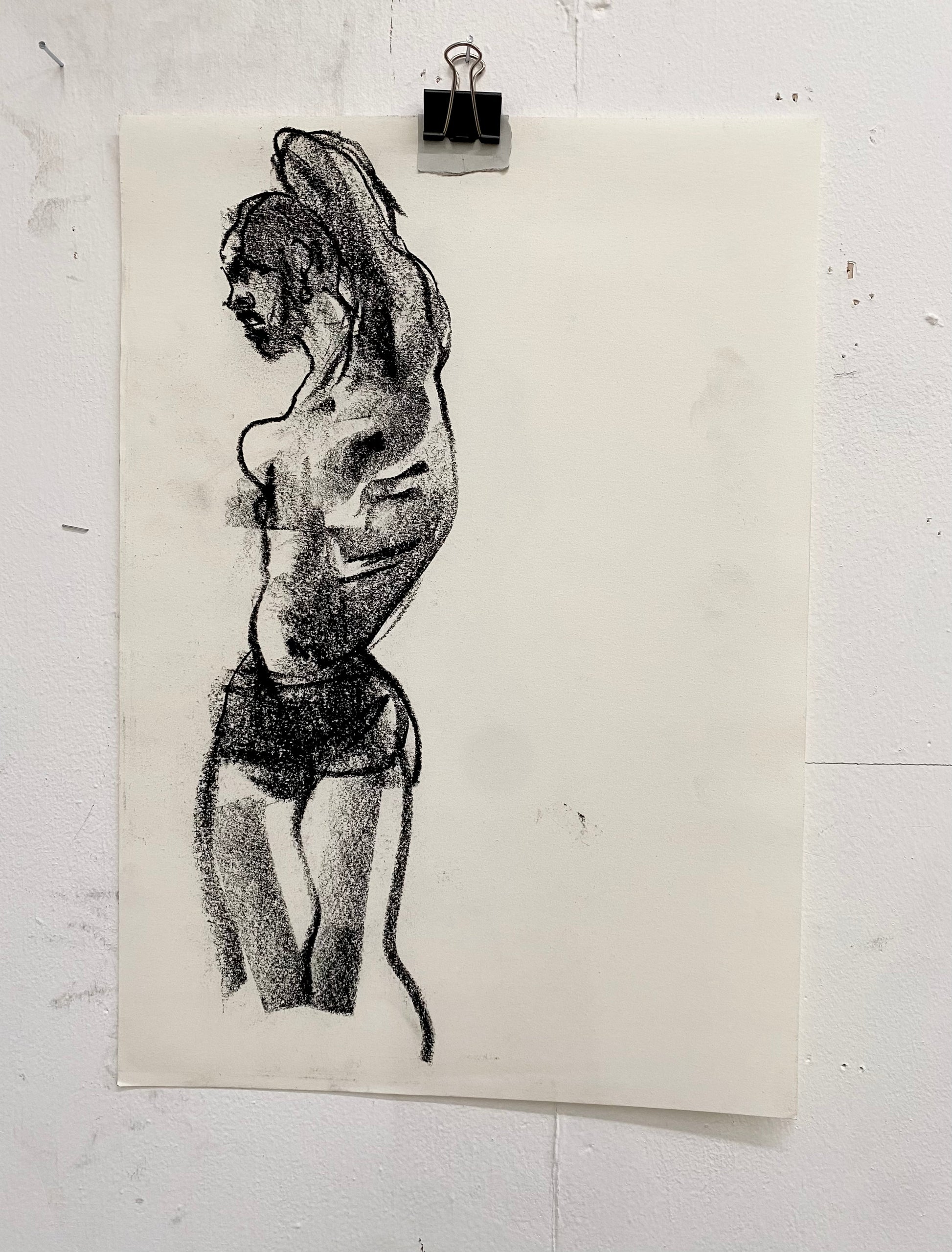 A drawing in black pastel on paper of the very elegant Dwayne!