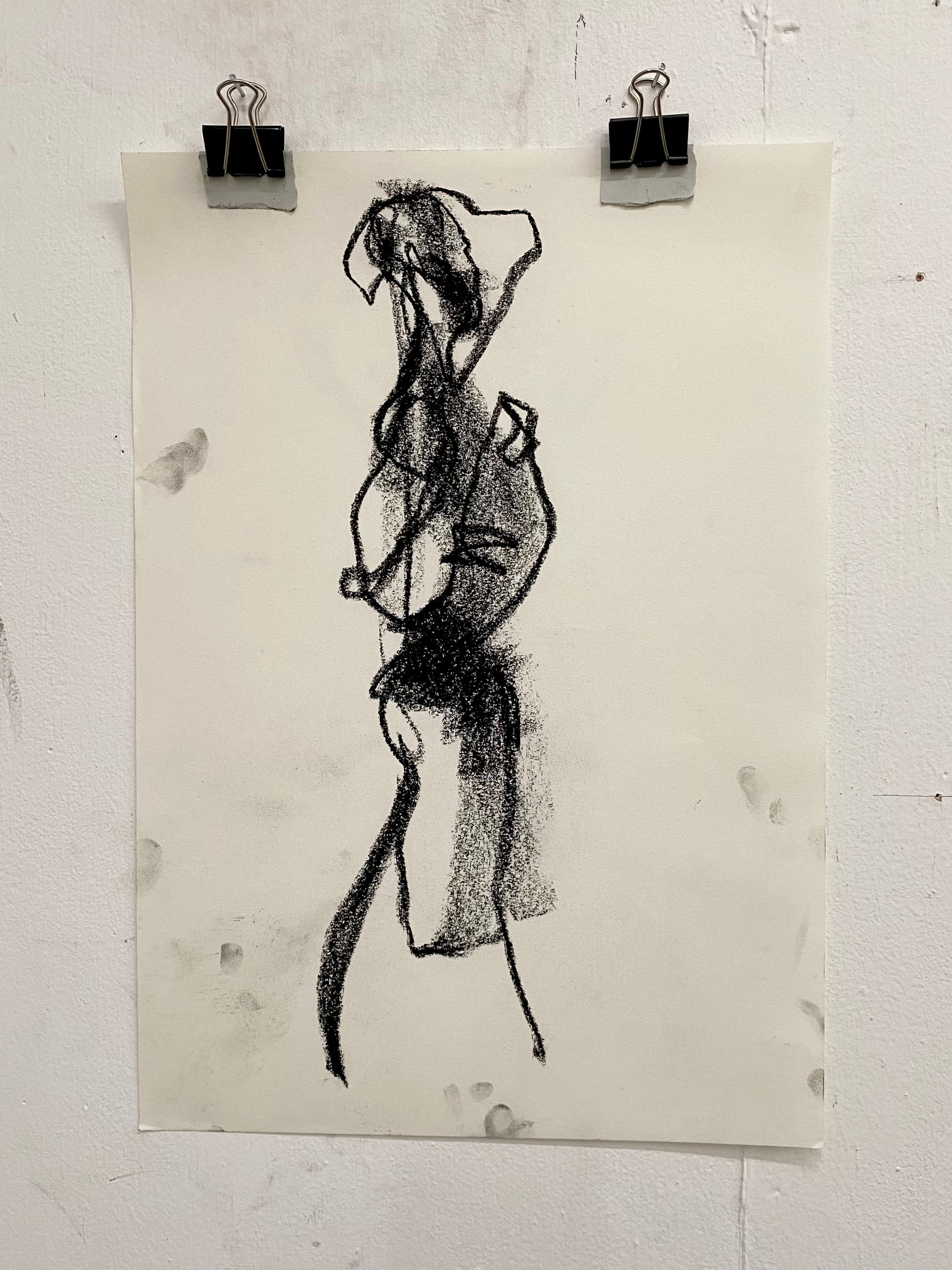 A drawing in black pastel on paper of the very elegant Dwayne!